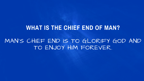 The Westminster Shorter Catechism Question one asks: What is the chief end of man? Answer: Man’s chief end is to glorify God and to enjoy him forever.
